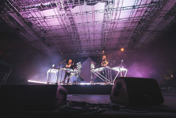 As Disclosure took the stage, fans waved cardboard fans boasting the duo’s signature white face outlines in anticipation. Disclosure have found success by draw from house influences while remaining accessible. As evidenced by their recent debut LP, Settle, their percussion isn't an afterthought to an over-produced radio chorus, like some radio-ready electronic music, nor are the hooks buried under shifting dubstep beats and bass drops. Live, slick dance floor tracks like “F for You,” which features Howard on vocals and a live bass for added effect, and the driving “When a Fire Starts to Burn” showcase how the brothers man that balance on the stage and with their audience. People aren’t afraid to dance, get lost—and sing along. And when the bass does drop, such as on “White Noise” featuring AlunaGeorge, it’s ecstasy.