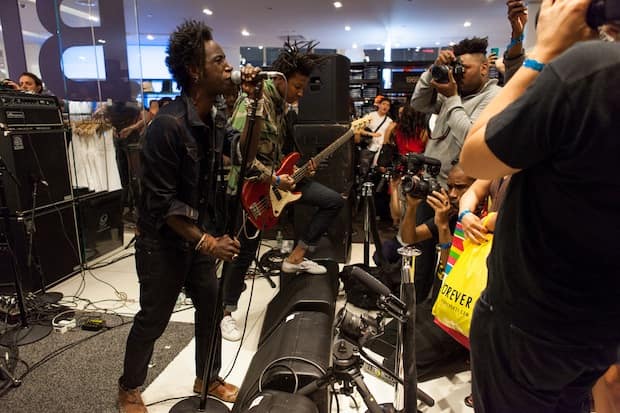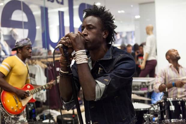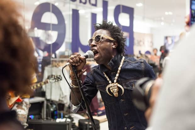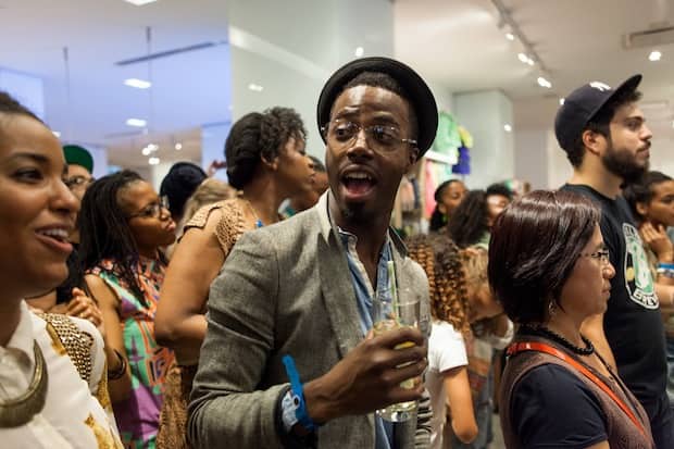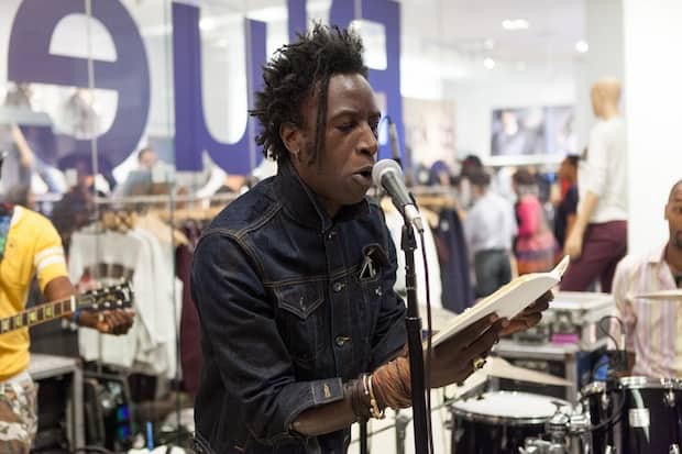 As part of GAP's national styld.by events yesterday, held in New York, LA, Chicago and more, they brought out Saul Williams, poet laureate of the hip-hop world, for a special performance in their store at 34th and Broadway. The party was co-presented by FADER, with Eater, Mashable and Refinery29, who provided a dessert bar, tweet wall and sweet T-shirt airbrushing station. We had a photographer on hand to capture the action.
