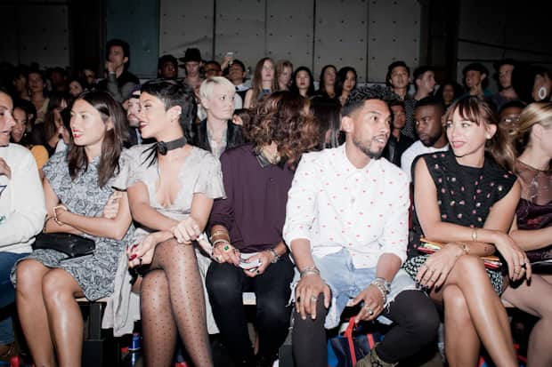 Last night at Opening Ceremony’s very first runway show, there were cars driving models down runways and Justin Bieber doing some weird shoulder-dance along with the music only a few seats away from me, but I was so busy sweating Rihanna that I barely noticed anything else. Clothes? What clothes? I'd been waiting for Ms. Fenty all of NYFW and here she was: low-cut dress, mullet, BFF Melissa Forde in tow, smoking blunts and staring into our camera like she could see into our souls. And in case you were wondering, she stayed at the after-party all night, drinking beer from a can and dancing to Future, because that's how real icons do it.