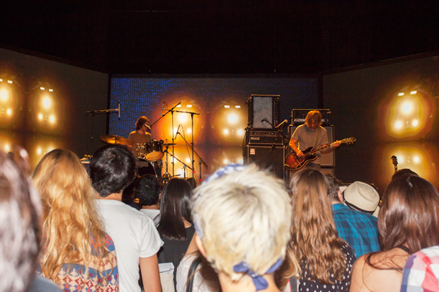 Yoshima, of Boredoms and Free Kitten, played an entrancing set with bassist Hisham Akira Bharoocha and Ryan Sawyer. Their cerebral, Eastern-influenced avant-rock fit in nicely against a backdrop of trippy, high-resolution visual imagery, as did the woozy pop of Ariel Pink’s Haunted Graffiti, who performed a mostly straightforward set of hits, including “Hang On To Life", the brilliant, breezy track Pink wrote with Violens’ Jorge Elbrecht earlier this year. Suicide's painfully loud performance was as alienating as it was captivating: watching Alan Vega, who is 75 years old, sing-talk "Ghost Rider" while Martin Rev insistently banged away on keyboards, sporting a pair of drop-crotch pants that even Justin Bieber would probably find off-putting, was, like everything else that night, an experience.