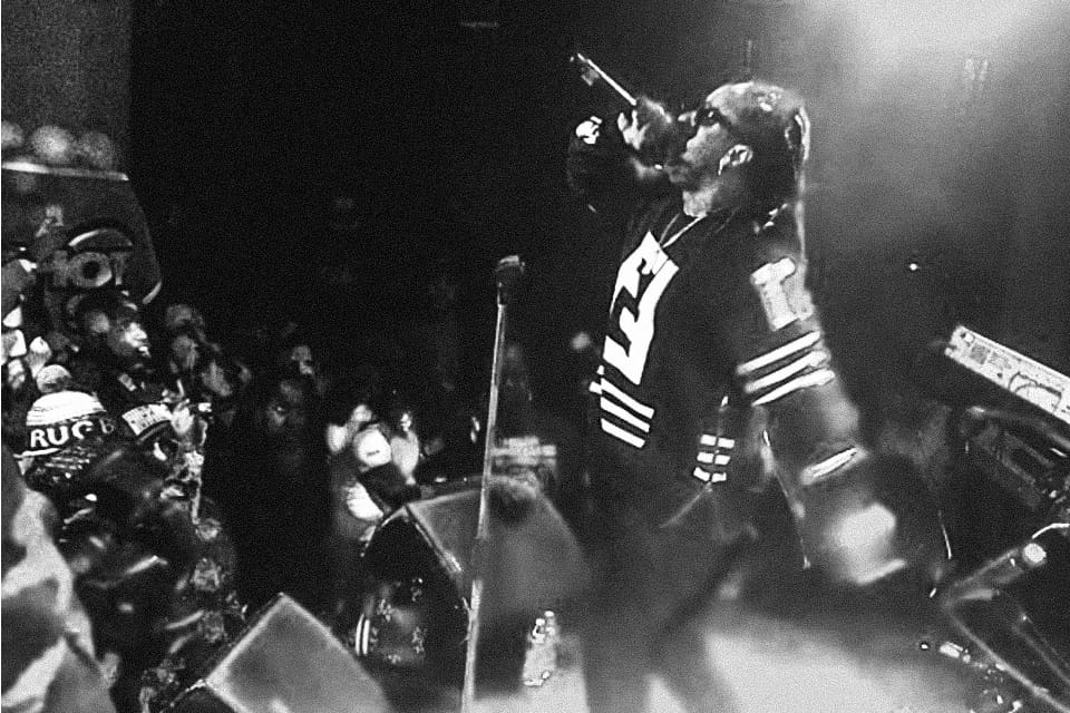 In his defense, he looked happy. He wore a Homme + Femme LA Karl Lagerfeld hockey sweater with huge Fendi Fs on the front where numbers would be and black loc sunglasses. His dreads were braided into larger tresses and pulled back behind his shoulders. A few feet behind him danced an unbelievably swaggy trumpet player he called “Pop,” who was old enough and resembled Dolla $ign enough that I’m nearly positive it was the original Tyrone Griffin of '70s/'80s funk band Lakeside, aka Dolla $ign’s actual father.