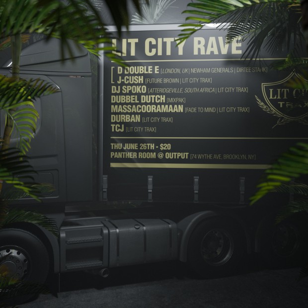 This Thursday, East London grime master D Double E of the Newham Generals will bring his scene to Brooklyn at Lit City Trax's Lit City Rave at Output, sharing headline duties with Future Brown producer and Lit City boss J-Cush. Also behind the decks will be DJ Spoko of South Africa, making a rare appearance alongside Dubbel Dutch, Massacooramaan, Durban, and TCJ. To keep you busy till then, listen now to J-Cush, D Double E, and Prince Rapid's recent NTS Radio mix below. (Apparently Prince Rapid will be releasing an instrumental LP on Lit City Trax soon.) Also check out this blast from the past, when D Double E freestyled in New York on FADER TV.