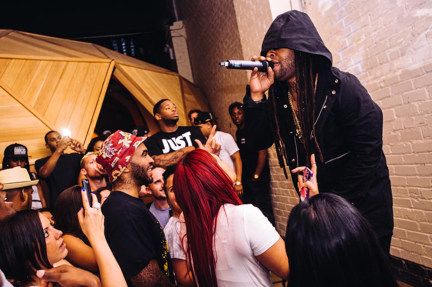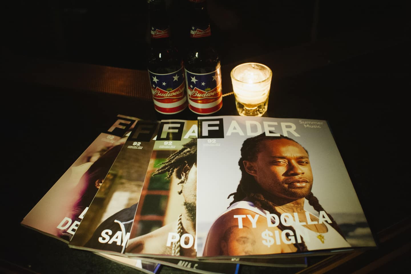 Since this year's Summer Music Issue had four covers instead of the usual two, we knew we needed a blockbuster release party to go along with it. So, we headed to North Williamsburg and got cozy inside Kinfolk's new geodesic dome-inspired party space, which was also a featured environment in the new issue. Budweiser, as always, stocked the bar; we sipped on cold ones during an expectedly great DJ set from Popcaan collaborator Dubbel Dutch (that Taylor Swift cover he dropped, daaaamn). Later on, F92 cover star Ty Dolla $ign rolled through to serenade us while wearing an unzipped black hoodie with no T-shirt underneath. Behind him, photographs from the issue—of Ty, of Lana Del Rey, of Sam Smith, of Popcaan—were projected onto a white wall, an appropriately big surface for four larger-than-life stories.