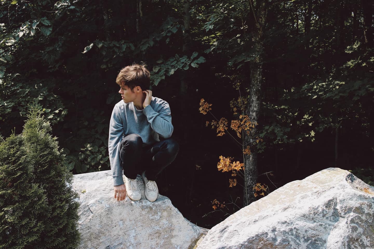 Six years ago, when he was still a teenager, Warren Hildebrand suffered the unexpected loss of his younger brother, Drew. During the period of depression and confusion that followed, the Canadian-born songwriter only ever found solace in sounds: listening to ambient engineers like Brian Eno, mastering his friends’ records and tinkering with his own breezy pop constructions. Presently, he runs a boutique indie label called Orchid Tapes out of the Brooklyn apartment he shares with his boyfriend and co-labelhead, Brian Vu. Over the past few years, while carefully shepherding releases from scrappy bedroom musicians like Alex G, Ricky Eat Acid and Coma Cinema, Hildebrand has been meticulously laboring over Ontario Gothic, his second full-length as Foxes in Fiction. Over seven songs, the 25-year-old constructs an achingly pretty dreamworld, filled with melancholic guitars and liquid synths. Below, in his own words, he opens up about hitting rock bottom, being at the center of a hyper-supportive music community and stitching his life back together, one song at a time.