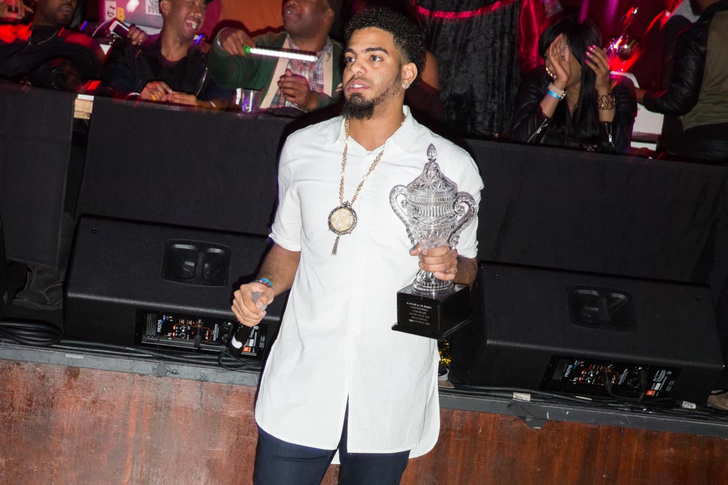 5. Qween Beats Symba McQueen presents the Grand Prize trophy to the House of Miu Miu.