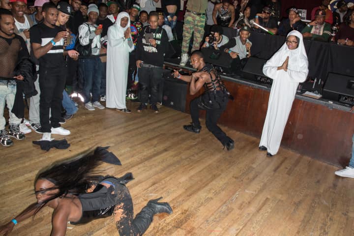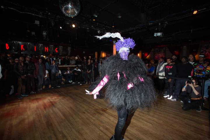 Starting just before midnight on Sunday, the 9th Annual Kiki Legends Ball took place at BB King's in Times Square. Most kiki balls happen during the day at venues such as community centers and community college gymnasiums, because such venues are more affordable and also don't have the same age restrictions as nightclubs. However, this year the Legends Ball was co-sponsored by a mainstream house—the House of Miyake-Mugler—as part of their 25th anniversary ball weekend (their mega-event in Queens on Saturday night drew the likes of Rihanna and FKA Twigs). This marked the first time a kiki ball was formally affiliated with a mainstream ball. Both balls shared the same theme, Porcelain, through which competition categories were interpreted.
