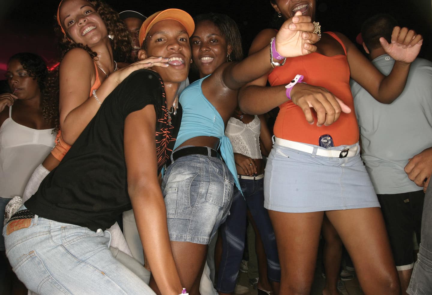 It's impossible to know when things fell apart—whether the wheels came off at some small moment during that week or so in Rio, or back in New York when it came time to piece it all together and weave some sort of gauzy hypertextual narrative linking race and sex and culture and technology and history and music in the context of Brazil's urban soundtrack. What I do know is what I heard and saw on Rio's funk scene—the funk scene of the favelas, not the imitation parties popping off for middle class kids at bars in Ipanema and Copacabana—is an uncharted underground of sex, drugs, music and dance with no discernible beginning or end. The whole thing was a never-ending party, the way the damned must party on certain rings of hell without realizing that their afterlives will be nothing but the dull ache of the soul trying to climb out of its cage. The people who live for it—funkeiros—seemed eager to leave their bodies. I saw manic eight year olds running high from huffing the bags of glue in their hands, and I saw grown men—well, 17 year-olds—passed out with their heads resting on speakers blasting so loudly the cases could barely contain the thrust of the volume. I saw two pairs of ten year-olds making out at a government-sponsored concert staged on a playing field in the middle of one slum (the strangest thing about it was the presence of government services in a favela, since the drug runners fund almost everything there, from schools to sambas to streetcleaning in the few favelas that had streets). Another night I turned around and saw a group of giddy teens chopping up impossibly white coke into mounds that seemed to be the size of their outstretched fingers before snorting it out of their cupped hands. By the last night I had heard enough of the same songs over and over to understand the basic vocabulary—at one show I watched a group of neighborhood girls with matching outfits and choreographed dance moves rap with a steely deroulement about being bitches with fat asses as they showed the crowd exactly what they meant.
