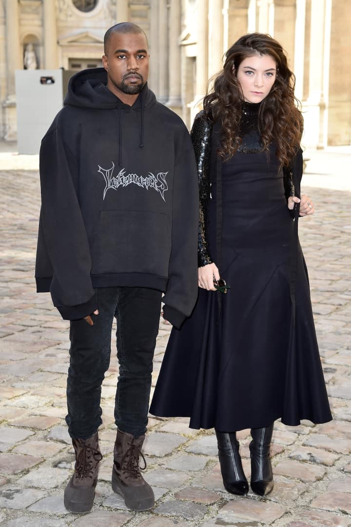 Let's keep this brief, because, really, what else is there to say? Kanye West and Lorde both attended Christian Dior's womenswear show during Paris Fashion Week, and they both showed up looking like a coupl'a damn goths. Kanye's sweatshirt looks like it could be a Xasthur sweatshirt, but does Kanye listen to black metal? Maybe.