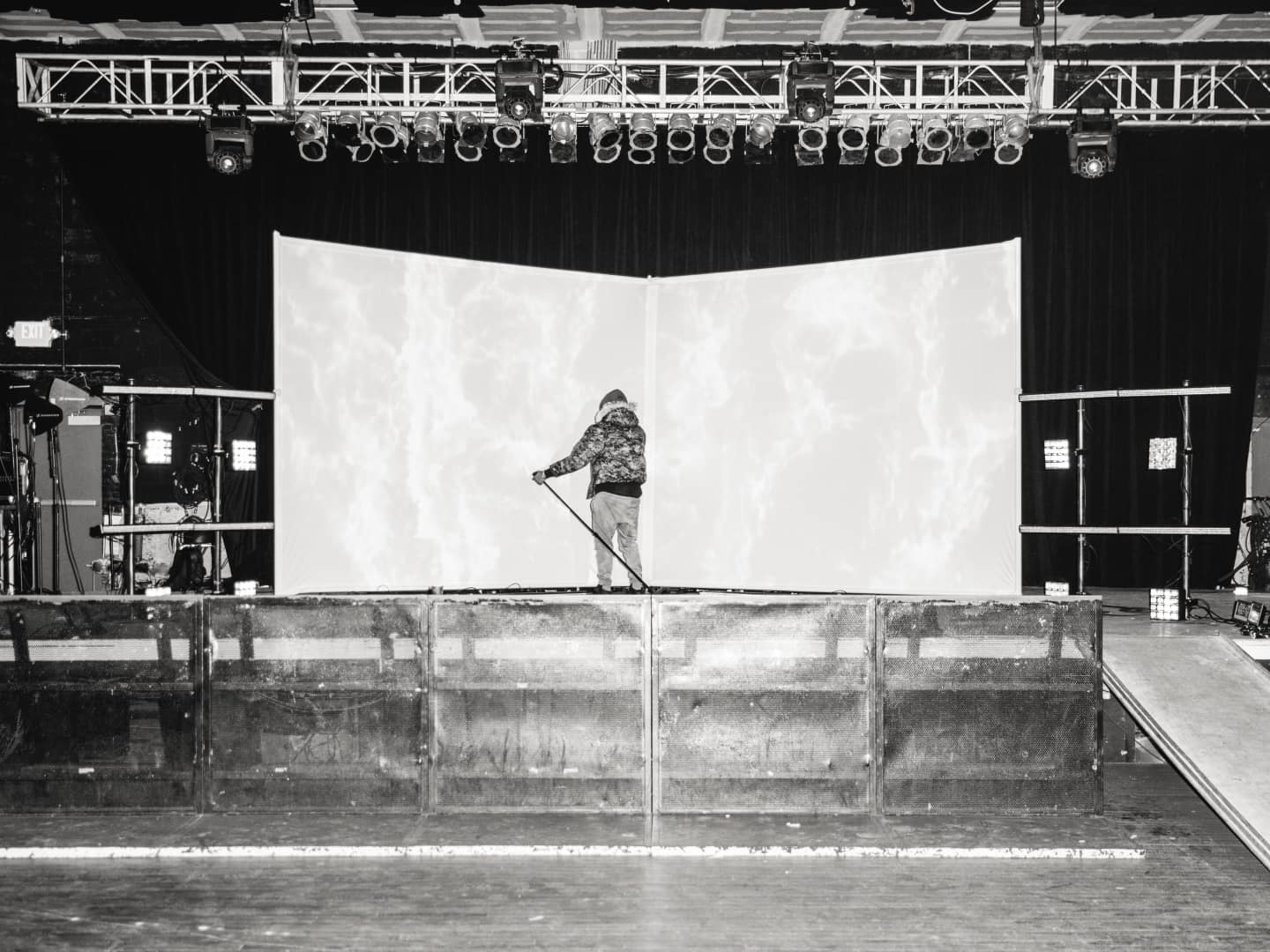 After a meal of chicken parmigiana and steamed spinach in Philly, Party makes his way to the venue in a pair of sweats. On this tour, he performs in front of a 30-foot-long, V-shaped screen, which, to emphasize the mood, plays slow-motion images of waterfalls, swaying palm tree branches, and flocks of doves flapping their wings. During soundcheck, he tucks himself into the seam of where the screen folds, turns his back to the theater, and sings down into his mic like a child mumbling to himself during a time-out. It's a stark contrast to the actual performance that night, when he stalks the stage in a customized baseball jersey and tight white jeans. The crowd in Philly isn't quite as loud as the one New York, but the room's energy is undeniable as Party sneers his way through "Don't Worry," the most aggressive record he's released to date.